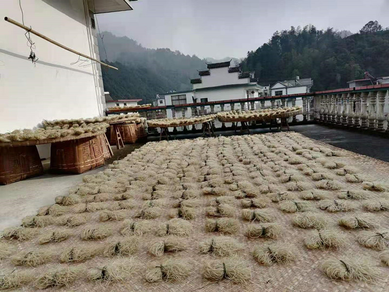 日前,在安徽黃山市休寧縣榆村鄉藏溪村村民葉雙林家裏,看到包裝好的紅薯粉絲待售的還不少,便與他聊起粉絲售賣情況,他興奮的告訴記者,短短2個多月已銷售紅薯粉絲超過千斤,銷售額達2.5萬餘元, 這是近年來最好的一年,預計年前還有一波售賣,全年粉絲純收入超萬元不成問題,這完全得益於近年來鄉里主打榆村紅薯粉絲這張牌所帶來的實惠,真是黃土地長出了“金疙瘩”。