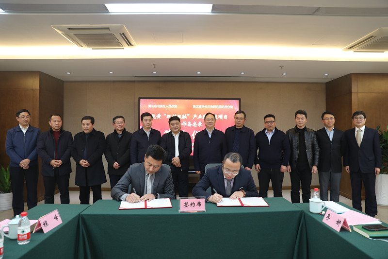1月18日,屯溪區人民政府與浙江清華長三角研究院杭州分院簽訂《黃杭“雙創雙融”產業園建設项目合作備忘錄》,並為杭黃科創飛地(成果轉化中心)揭牌,推動雙方發揮各自優勢,實現資源共用、優勢互補。