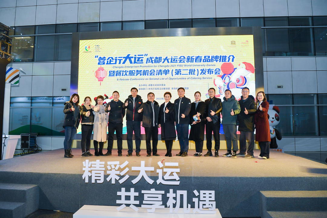 1月20日,「蓉企行大運」成都大運會新春品牌推介暨餐飲服務機會清單(第二批)發佈會在成都高新區金融城舉行。活動以「蓉企行大運——精彩大運,共享機遇」為主題,是繼北京、廣州、上海、珠江大運品牌推介會和首次餐飲服務機會清單發佈後,成都大運會再次釋放大運能量,與廣大企業共享世界賽事機遇。