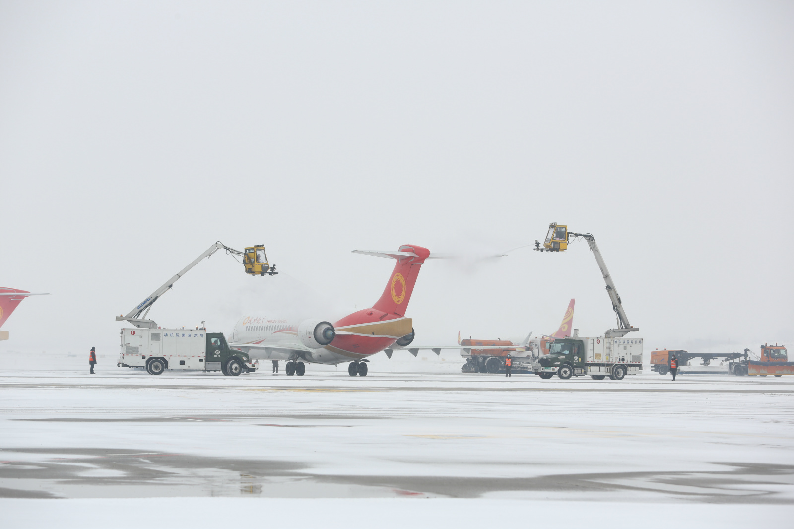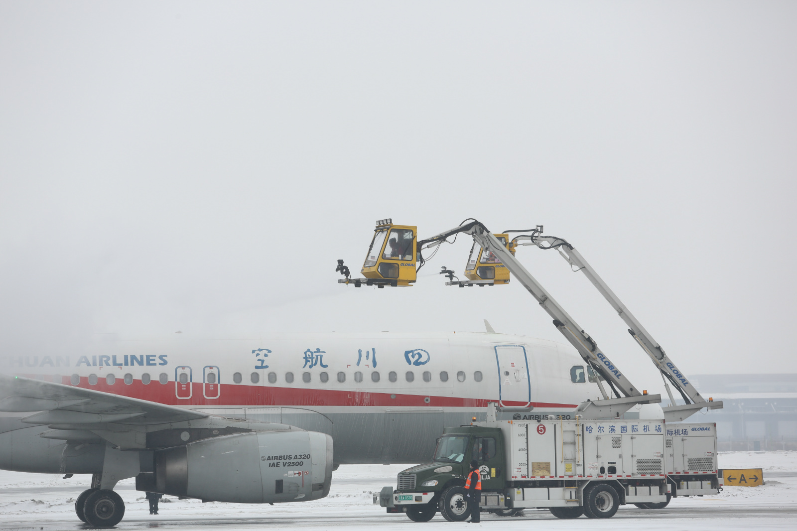 為保障旅客出行,哈爾濱機場運管委組織召開聯席會議,對清冰雪和航班保障工作提前進行了部署。降雪開始後,哈爾濱機場立即啟動清冰雪預案,組織清雪作業人員,出動各類掃雪車15台,採取邊下邊清、人機結合、多種大型機械組合作業等清冰雪方式,對跑道、滑行道、機坪進行了清掃,並利用航班間隙對跑道、滑行道進行了集中清掃。同時,哈爾濱機場出動多台除冰車對飛機實施除冰作業,單位小時除冰能力達到16架次/小時。