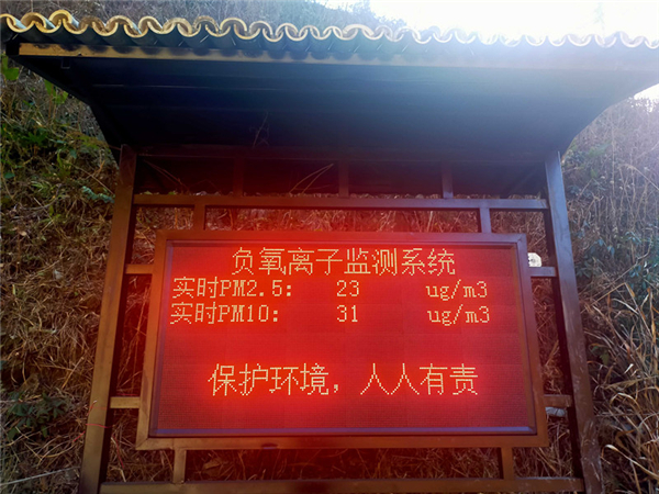 安徽黃山市休寧縣陳霞鄉里莊村位於海拔1486.5米的五龍山脈山坳中,是華東最高的行政村。走進村莊,一台長2米,高1米的負氧離子監測系統佇立在村遊客接待中心廣場上,LED螢幕上顯示著現場空氣指標:PM2.5為23ug/M3,PM10為31ug/M3,根據PM2.5檢測網空氣品質新標準劃分等級,該地環境處於一級最優狀態。