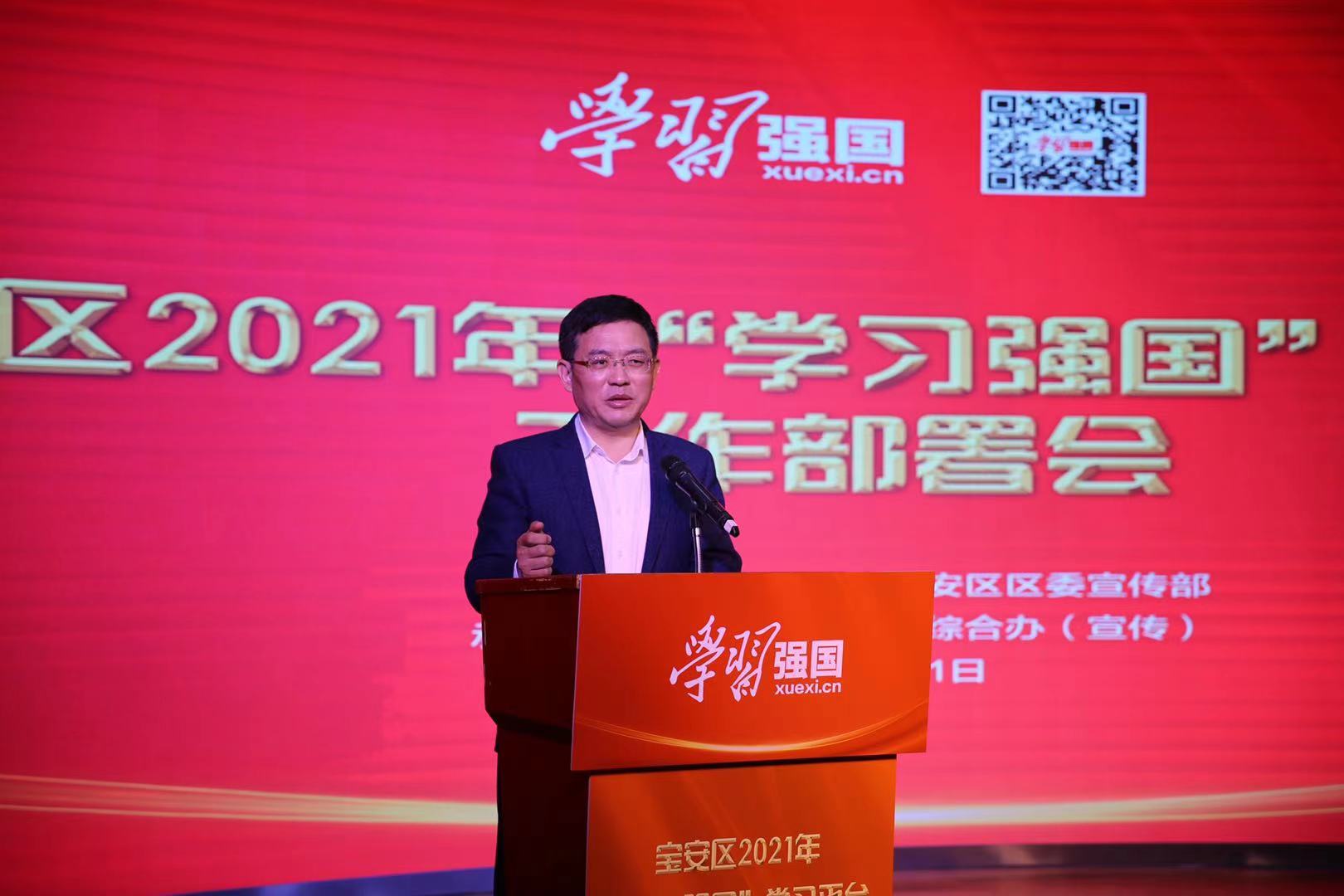 會上,寶安區委宣傳部副部長易春雷介紹了2020年寶安區「學習強國」工作情況。據悉,2020年,寶安區「學習強國」學習平台用戶數據不斷優化。全區18個基層黨(工)委,平台總註冊人數82652人,其中黨員47237人、群眾35415人,黨員覆蓋率100%,人均積分始終位居全市各區前列。2020年,寶安區組建了全市第一家「學習強國」學習平台區級編輯部,組織各黨(工)委通訊骨幹打造了一支「學習強國」學習平台優質內容輸送隊伍。2020年全區向平台供稿1613條,採用620條,其中全國平台選用34條,採用量位居全市各區之首。