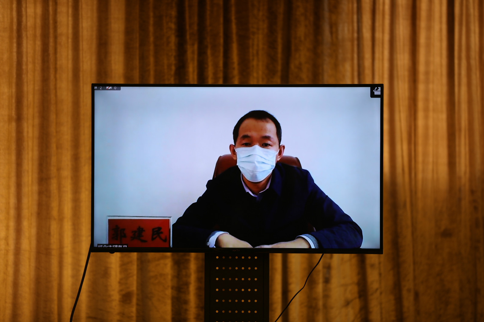 綏化市衛生健康委員會主任郭建民通過視頻連線介紹相關情況 石啟立/攝
