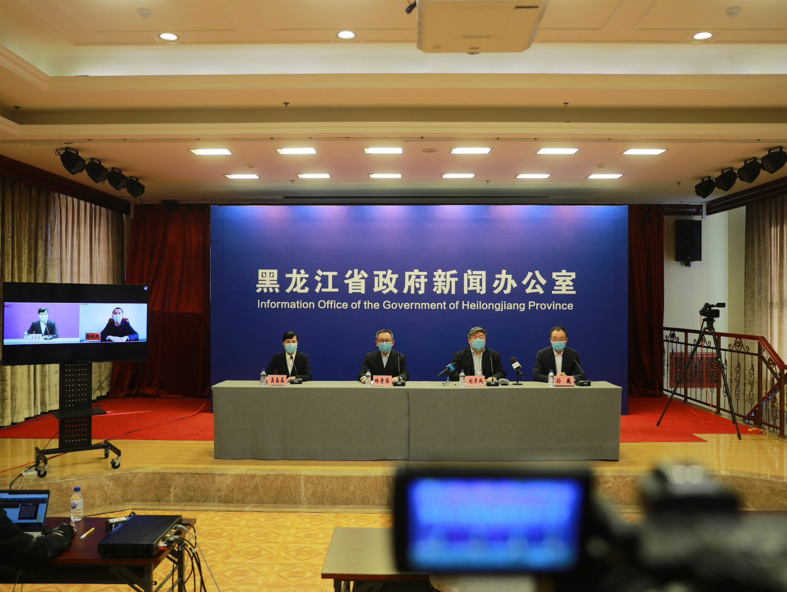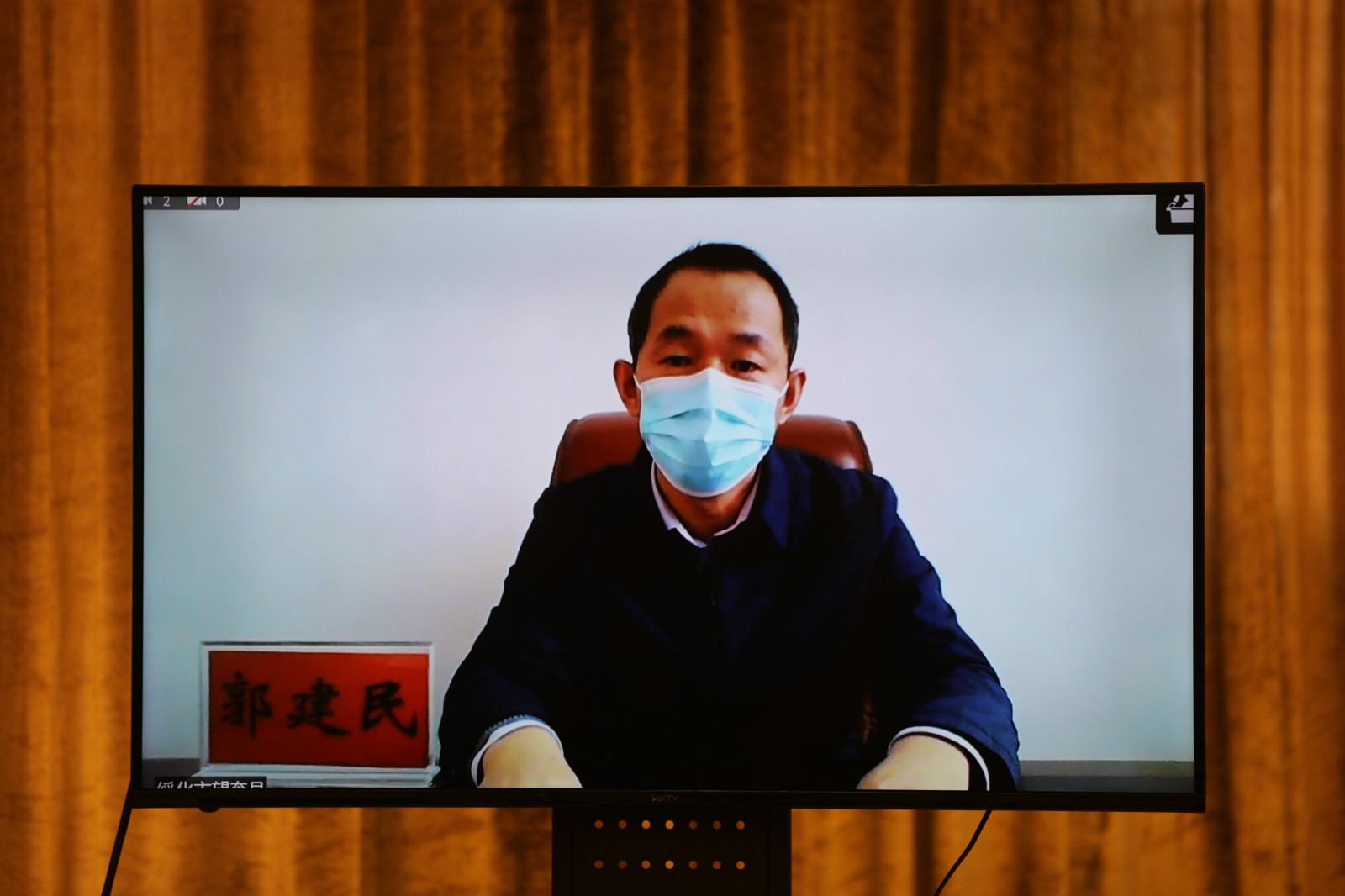 綏化市衛生健康委員會主任郭建民通過視頻連線介紹相關情況 石啟立/攝