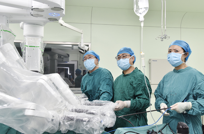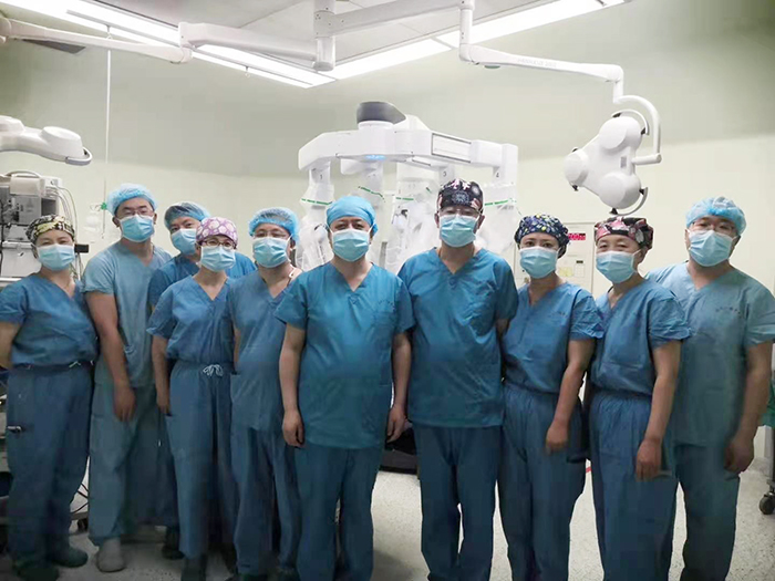 百例手術,手術涵蓋了普外科、婦產科、胸外科、泌尿科等學科,其中包括李汛院長、張磊主任普外科團隊開展的機器人胰十二指腸切除術、機器人肝癌切除術、機器人膽管癌根治術、機器人胃癌根治術、機器人脾切除+斷流術;楊永秀副書記團隊開展的機器人輔助子宮內膜癌根治術、機器人輔助巨大子宮切除術,機器人輔助廣泛性子宮切除術、機器人輔助子宮全切+雙側附件切除術;韓彪主任、馬敏傑主任團隊展開的機器人輔助經頸胸腹食管癌三切口根治術、機器人輔助縱隔腫物切除術、機器人輔助胸腺擴大切除術、機器人輔助肺葉切除/袖式切除術;張立元主任團隊開展的機器人輔助前列腺癌根治術、機器人輔助腎癌根治術、機器人輔助腎盂成形術、機器人輔助腎部分切除術、機器人輔助輸尿管膀胱再植術等手術。