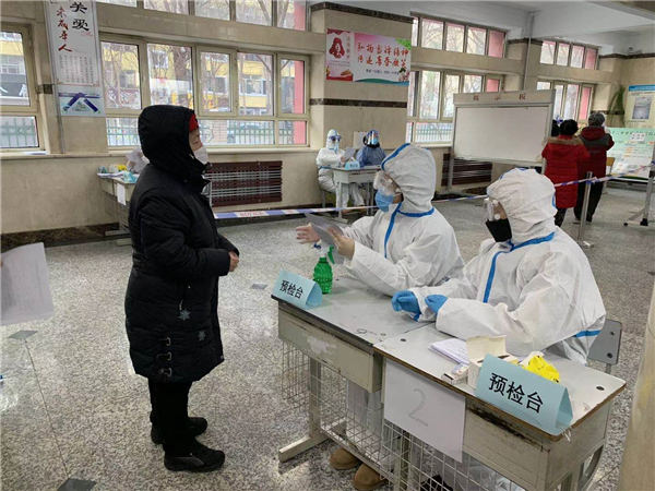 每一個忙碌在群眾中與課桌前的「防護白」身影,內心都燃燒着一團火,他們在寒風中組織群眾、維持秩序,力保候等現場秩序井然;他們穿着厚重的防護服伏案書寫,排查信息、核實登記,保證檢測工作嚴謹真實;他們一絲不苟協助醫護人員、做好檢測保障工作,確保採樣工作有序進行。
