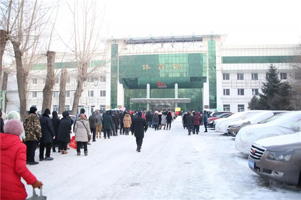 共樂街道民橋社區主任姚莉,負責哈商大體育館點位的外圍管控工作。她從21日傍晚開始,由於要不停地引導解答,忙得顧不上喝水,嗓子已經沙啞。姚莉說:「這個時候看到大家都那麼辛苦勞累,再冷再累,我這都不算啥,嗓子養兩天就好了」。