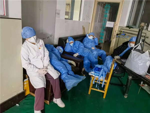 為了節約一件防護服,負責採樣的醫務工作人員有的一天都吃不上一口飯,喝不上一口水,一個椅子、一張桌子就是他們的休息室,短暫小憩之後又一次奔赴現場。短短三日,他們一直爭分奪秒,爭的是戰勝病毒的希望,奪的是人民群眾的安全。