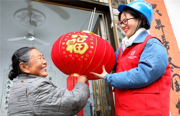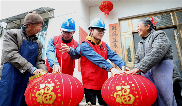 1月25日,安徽歙縣供電公司黨員服務隊的志願者到上豐鄉上豐村回訪脫貧戶王玲玲(左),給老人們送去迎春的祝福。