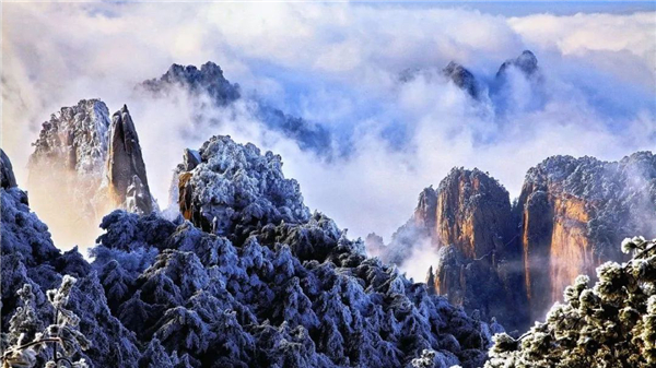 若是遇上下雪,奇妙的霧凇、雪凇、樹掛,把黃山妝扮得如同一個盛開的琉璃世界,這樣的冬景你切不可錯過。