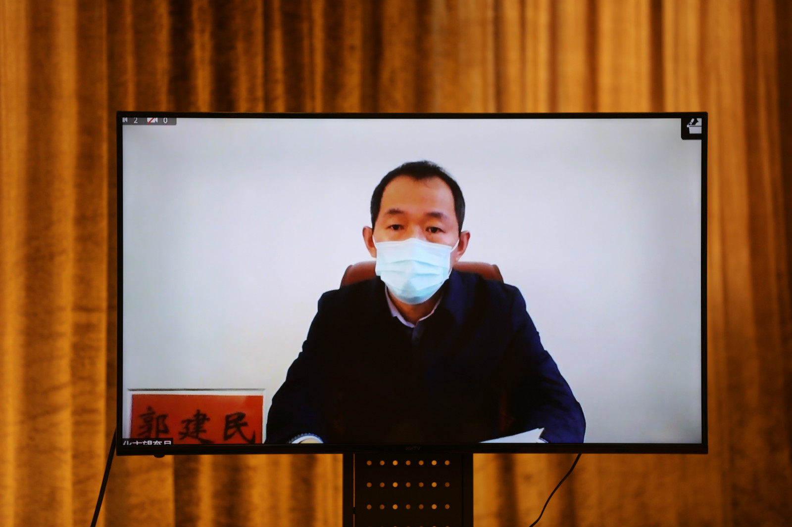 綏化市衛生健康委員會主任郭建民通過視頻連線介紹相關情況 石啟立/攝