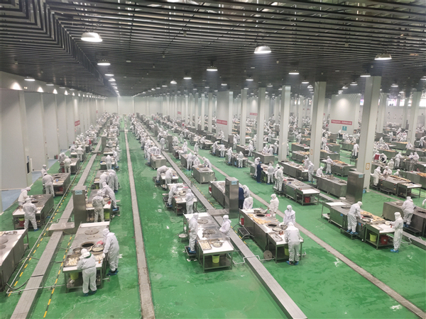 推介會後,記者隨導購走進廠房二層,在封閉式廊道上參觀了產品研發、食品檢驗、流水線生產及成品保鮮儲存為一體的5.1萬平方米的聯合生產廠房。