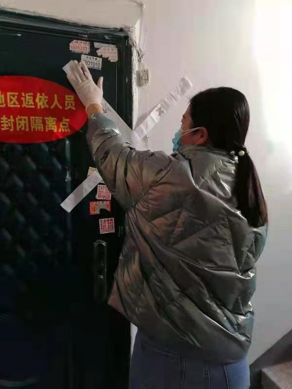 在這場疫情防控阻擊戰中,作為共產黨員、第一書記,危難時刻,竇雲傑主動承擔起全社區1800多人的排查工作。按照「外防輸入、內防反彈、人物同防」防疫要求,她每天與網格長挨家挨戶排查高中風險地區返依人員,以確保返鄉人員沒有隱報瞞報問題的發生,確保在第一時間進行隔離管控。
