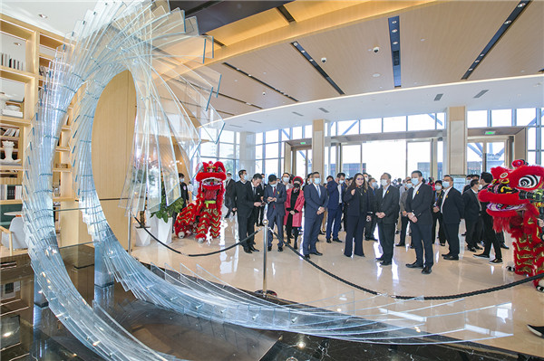 領導和嘉賓參觀酒店大堂。(龍少攝)