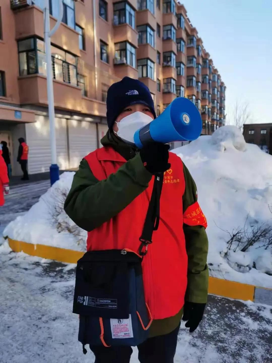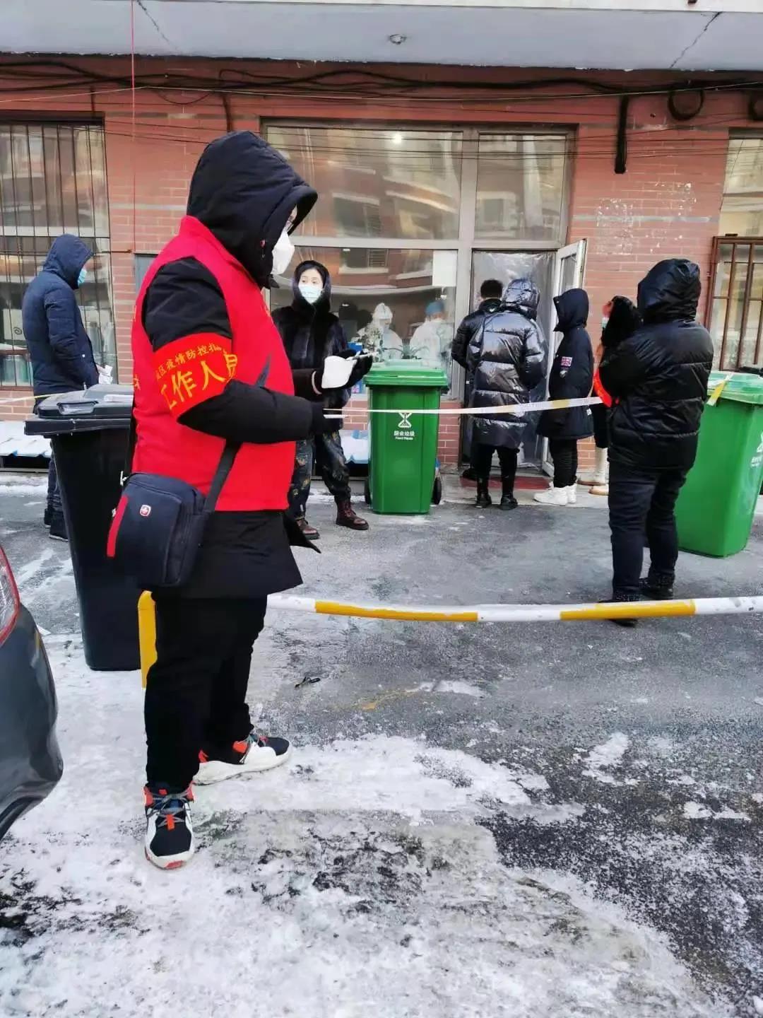 「大伙兒把身份證提前準備好,保持一米的安全距離」「請您提前準備好身份證,我們的檢測很快的,請大家耐心等待。」「請大家戴好口罩,保持安靜,這樣才能保護好自己。」在檢測現場,志願者們引導居民有序排隊、核查居民的身份信息、為居民測溫、看見腿腳不利索的老人主動上前扶一把、運送防疫物資……不畏嚴寒、不言苦累,一干就是五六個小時,他們奔波忙碌的身影、身上顯眼的「紅馬甲」,成了檢測現場一道靚麗的風景線。