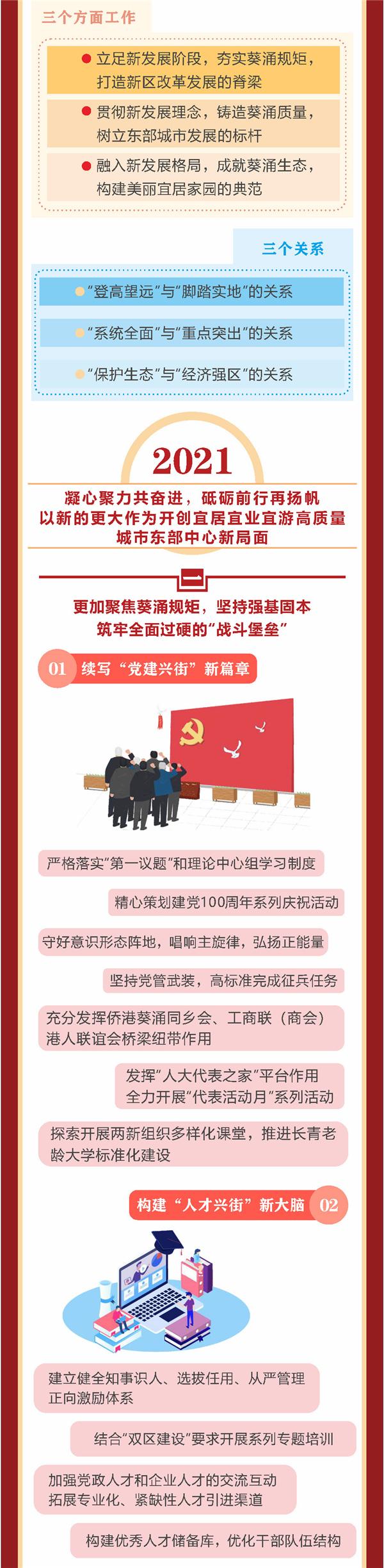 會議總結2020年取得的工作成績,謀劃「十四五」發展思路及二〇三五年遠景目標,部署2021年工作任務,搶抓「雙區驅動」和綜合改革試點重大歷史機遇,落實新區「生態立區、經濟強區」戰略部署,以更高站位、更寬視野、更實舉措,加快建設宜居宜業宜游的高質量城市東部中心。
