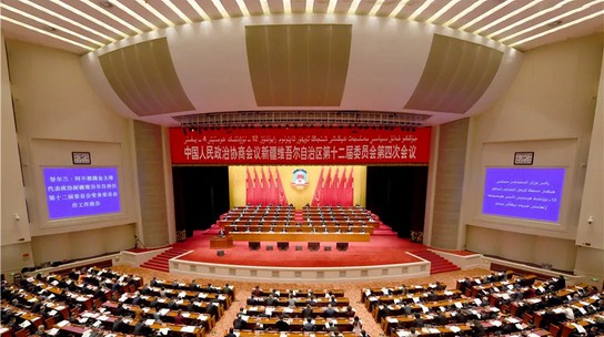 10時30分,程振山宣布大會開幕,全體起立,唱國歌。大會首先審議通過了自治區政協十二屆四次會議議程。努爾蘭·阿不都滿金代表自治區政協十二屆常委會,向大會報告工作。