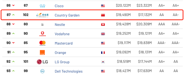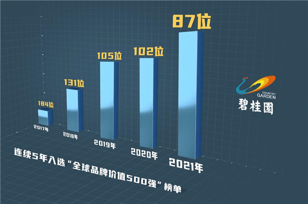 近日,英國知名品牌價值諮詢公司Brand Finance發佈「2021年全球品牌價值500強」榜單,碧桂園集團排名自2017年以來實現「五連跳」,持續攀升至第87位,首次躋身前100位。