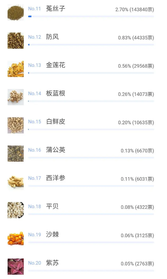 據了解,本次評選活動自2021年1月25日開始,於2月1日網絡投票結束。本次活動得到了全省各地農業農村部門,中藥材行業協會、相關企業、專業合作社和種植戶等社會各界的高度重視和大力支持,經過7天時間的踴躍投票,截止評選活動結束,網絡總投票量達到564.7萬票,黑龍江省道地藥材得到進一步展示宣傳,對全省中藥材產業大發展、快發展必將起到積極的促進作用。(記者 張曉磊)