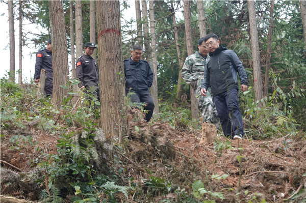 資溪縣總林長、縣委書記黃智迅(前一)在資溪縣鶴城鎮巡山督導
