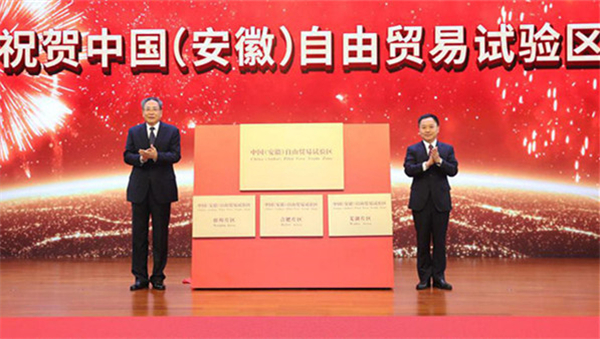 安徽省委書記李錦斌、時任安徽省長李國英為安徽自由貿易試驗區揭牌