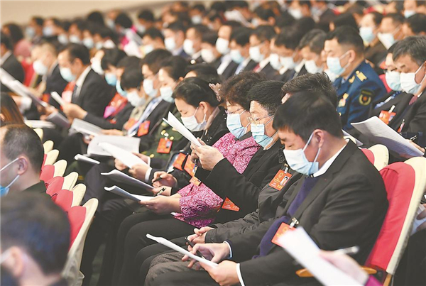 1月28日,出席省十三屆人大四次會議的代表在認真聽取《政府工作報告》