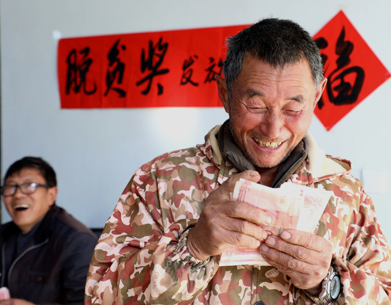 當日,有30多戶脫貧戶領到“脫貧獎”和“扶貧紅利”,最多戶拿到5000多元。