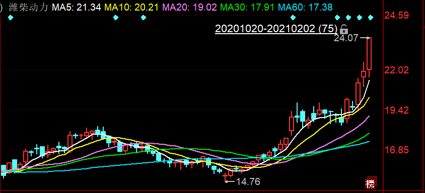 2021年2月2日,濰柴動力A股(000338.SZ)尾盤強勢漲停,報收於24.07元;H股(2338.HK)漲幅更是達10.83%,報收於24.05港元;總成交量超50億元,總市值達1832億元人民幣,直奔2000億大關。濰柴動力,這家行業龍頭的股價在歲末年初強勢爆發,屢創歷史新高。