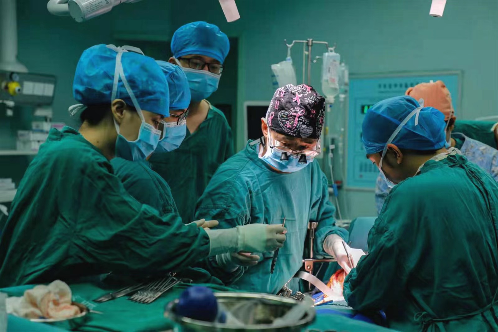 2021年1月11日,在麻醉醫生和手術室護士配合下,劉祥德教授帶着魏曉林、彭敏劼醫生,開始手術。