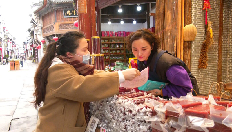 由於屯溪老街街道轄區內商戶較多,其中外地來本地經商的商戶也不在少數,為了引導外地商戶就地過年,減少流動,街道工作人員挨家挨戶上門為他們送上倡議書、“愛心防疫禮包”等,讓年味不打折。屯溪老街商戶洪福霞是江西人,年邁的父母都生活在江西,每年過年她都要回去陪伴二老,但是考慮到今年的特殊情況,就回應了國家就地過年的倡議。“每年過年的時候都要回去陪他們吃吃年夜飯,今年的話社區提倡就地過年,我就不去了。社區對我們很關心,送來了防疫物資還有對聯,真的挺感動的,也很開心。”屯溪老街商戶洪福霞。