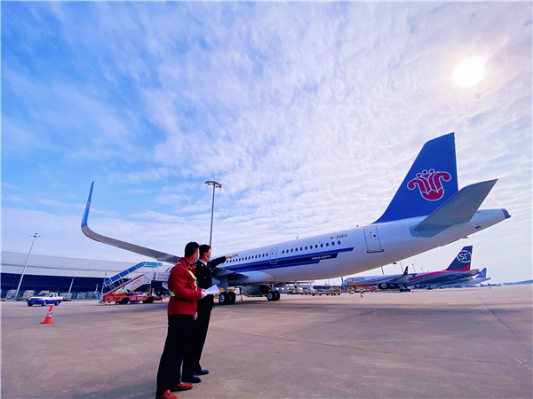 廣州白雲機場海關關員正在監管融資租賃進口飛機