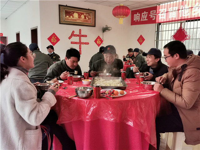 2月4日,四川省北川羌族自治縣組織20多名外地留崗農民工歡聚一堂,一起掛福字、包餃子、吃餃子,讓他們留在異鄉為異客,開開心心敘友情,歡歡喜喜過小年。