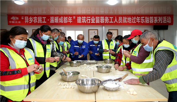 本次活動旨在倡議外鄉人員儘量留蓉過年,並舉辦豐富多彩的系列活動,讓留蓉人員在這個因「疫」生變的春節就地過年,幸福不減。在東安湖項目分會場,中國五冶10名項目管理人員和24名農民工代表歡聚一堂,大家一起包餃子、煮湯圓、寫對聯,其樂融融。項目團隊還為農民工送上了洗衣粉、肥皂、洗髮水等生活用品,表示項目將做好各項保障工作,確保留守農民工兄弟過一個快樂、安定、祥和的春節。(記者 梅超)