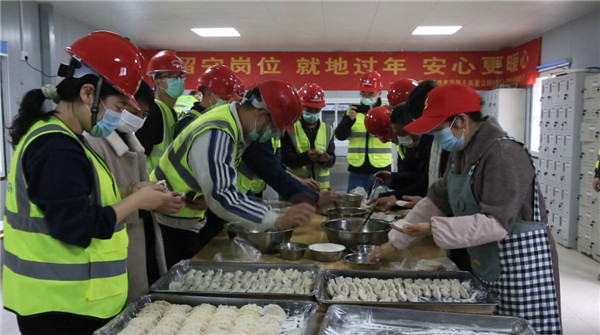 活動現場,教的人不厭其煩地講,學的人認認真真地包,大家邊聊邊包,互幫互教,各顯其能,歡聲笑語不絕於耳。今年21歲的项目部安全員徐銀柱去年大學畢業就來到项目部工作,今年也是第一次留在外地過年。“品嘗著自己親手包的餃子,感受到了濃濃的家鄉味道。在這裏我也祝願我的家人身體健康,萬事如意。”端起熱氣騰騰的餃子,選擇留在工地過年的徐銀柱眼角有些濕潤。也是在這一刻,家人般的團圓餃子讓彼此的心走得更近。