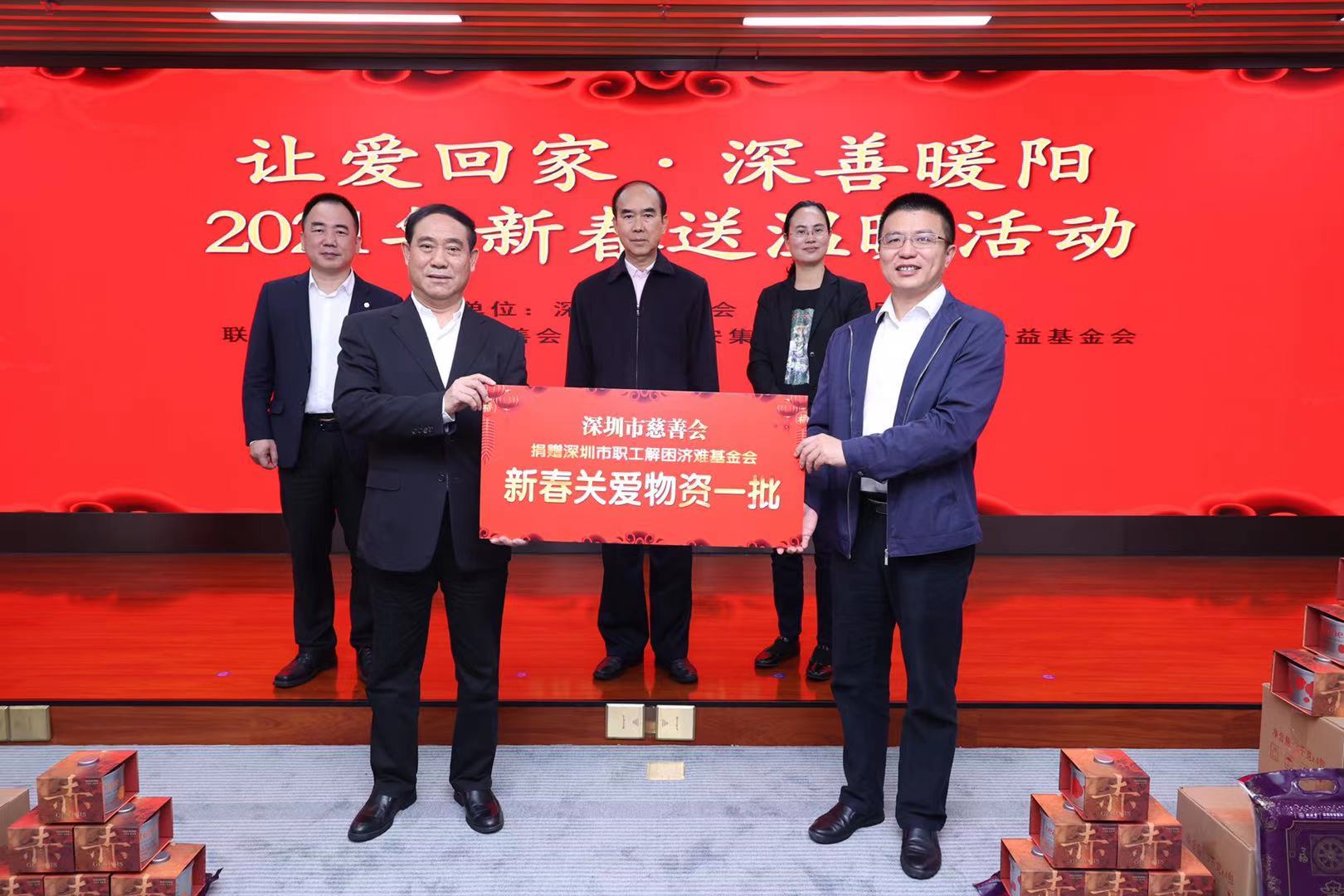 2月5日上午,「讓愛回家·深善暖陽」新春關愛發放儀式舉行。本次活動由深圳市總工會、深圳市民政局指導,深圳市慈善會、中國平安集團等聯合主辦。
