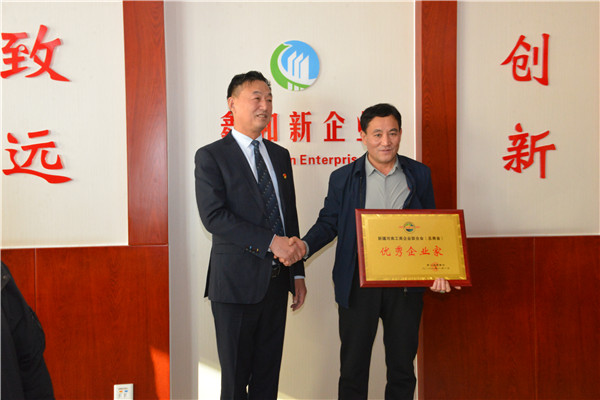 新疆河南工商企業聯合會執行會長馬運動(右)榮獲2020年優秀企業家