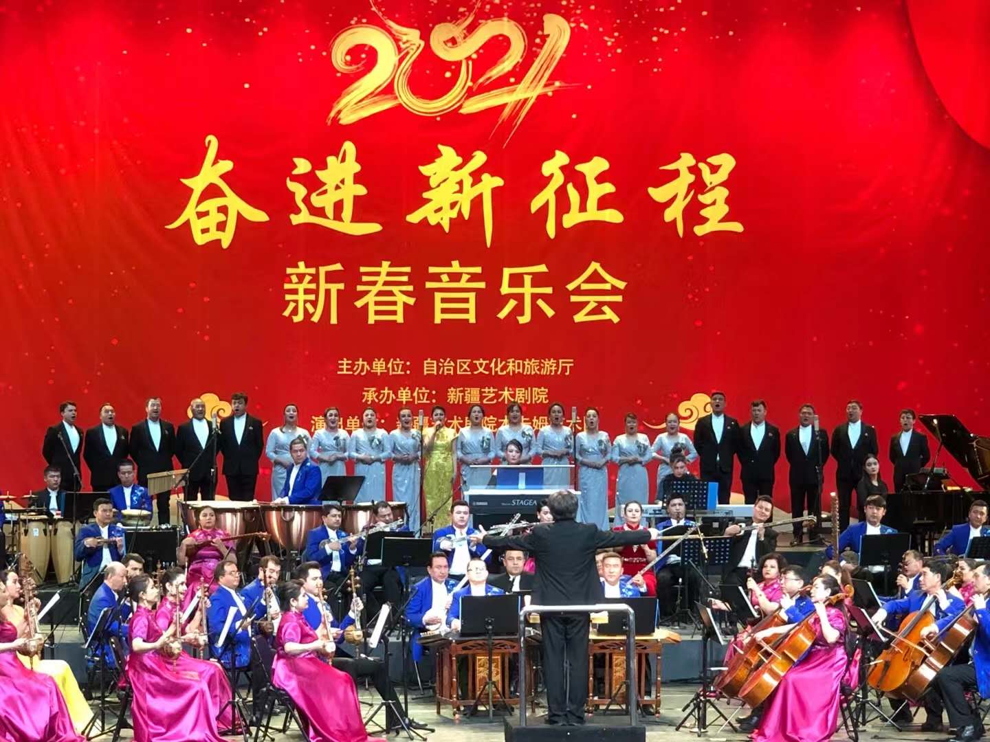 2月5日晚,由自治區文化和旅遊廳主辦,新疆藝術劇院承辦的「奮進新征程」新春音樂會在新疆木卡姆藝術團劇場舉行。13個節目唱響中國韻,演繹新疆情,獻上了高水平、高品質的視聽盛宴。