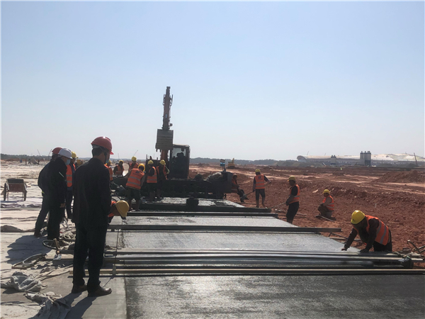 湛江機場遷建工程現場,工人們在進行飛行區道面施工(作者:阮柯)