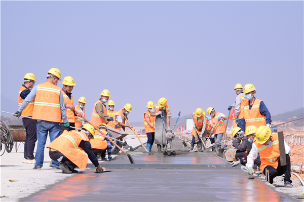 韶關機場工程現場,工人們正在進行飛行區道面施工01(作者:何維)