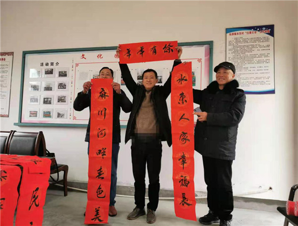 “‘大師’們結合我們水東村發展實際原創的春聯,很有時代感和新意。”第一個取聯的水東村黨支部副書記紀綱興奮地將“年年有餘”的橫批高高在舉過頭頂。