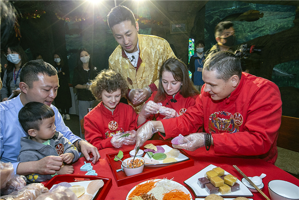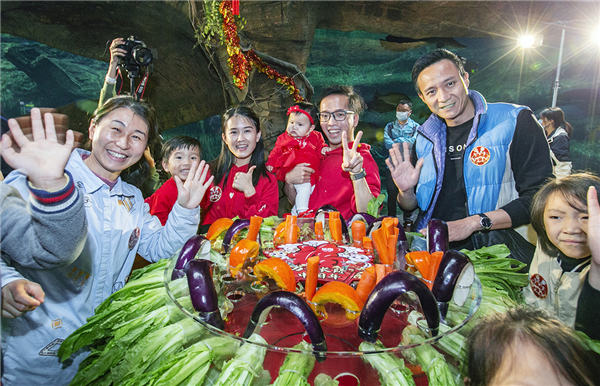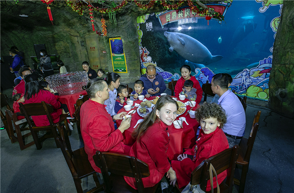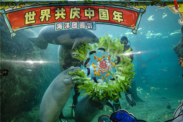 2月9日,西非海牛寶寶與留粵過年的俄羅斯籍友人、澳門及東北友人在珠海長隆海洋王國一起度過了一個別開新面的“年二十八”。留粵過年的嘉賓朋友們共同為珠海長隆新生的海牛二胎寶寶“比莉”及海牛家族,量身打造了專屬的團圓大盆菜,祝福海牛家族新春幸福安康。