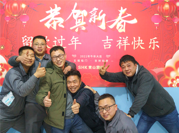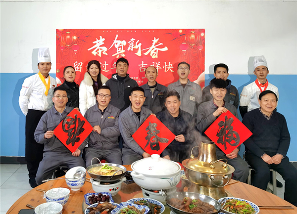 與此同時,年夜飯也是準備正酣。牛肉火鍋、清蒸鱸魚、爆炒豬肝……為了讓留歙過年的外地員工吃上地道的徽州年夜飯,公司特地邀請當地徽菜技藝傳承人上門烹飪,盡可能讓大家吃的舒心開心。