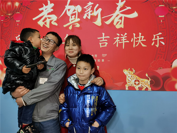 2月8日,農曆臘月二十七,在歙縣經濟開發區的黃山震壹精密機械有限公司食堂裏,選擇就地過年的外地員工正聚在一起,寫春聯、貼福字,熱鬧迎新春。“我是第一次在中國過新年,感覺非常開心。”來自馬來西亞的李治良則提起毛筆,用馬來語寫起了福字,為遠在異國的親人送去祝福。