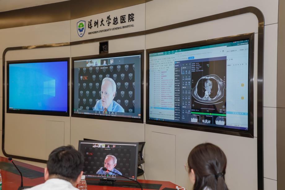 美國著名腫瘤專家為深圳大學總醫院患者遠程會診!2月2日,深圳大學總醫院血液腫瘤科組織了定期的國際會診,會診的外國專家是來自美國南加州凱克醫療中心諾里斯癌症醫院的腫瘤科主任達西·斯派澤(Darcy Spicer)教授和乳腺癌中心主任珍妮斯·盧(Janice Lu)教授。