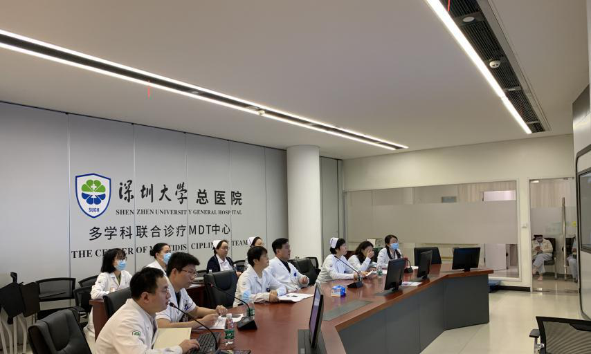 當天,會診在深大總醫院多學科診療中心通過線上交流方式進行,接受會診的病例既有諮詢後續治療方案的早、中期患者,也有中、晚期難治性病例。這些患者經過長期化療、靶向治療後,腫瘤出現耐藥進展,如何有效地找到全身治療方案或是減輕局部病灶症狀的手段?與會專家通過分析既往治療效果、評估目前疾病的進展程度,現有的基因分析結果、影像結果以及考慮患者自身意願,提出可行的治療建議。整個會診過程中,患者和陪護人員全程參與,根據自身情況,提出問題,國外專家一一作出解答。