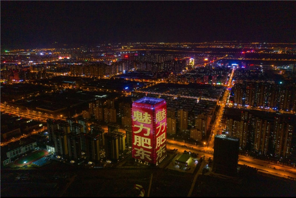 春節将至,為營造出濃濃的新年氛圍,安徽省合肥市肥東縣在文一鉑金中心舉行以「我的中國夢」、「恭賀新春」、「我愛肥東」等為主題的燈光秀,點亮肥東之夜,流光溢彩,美輪美奐。本次肥東燈光秀把年的熱鬧、年的喜慶、年的厚重淋漓盡致地表現出來,并體現肥東和諧生態、宜居頤養、福祥寶地之意。