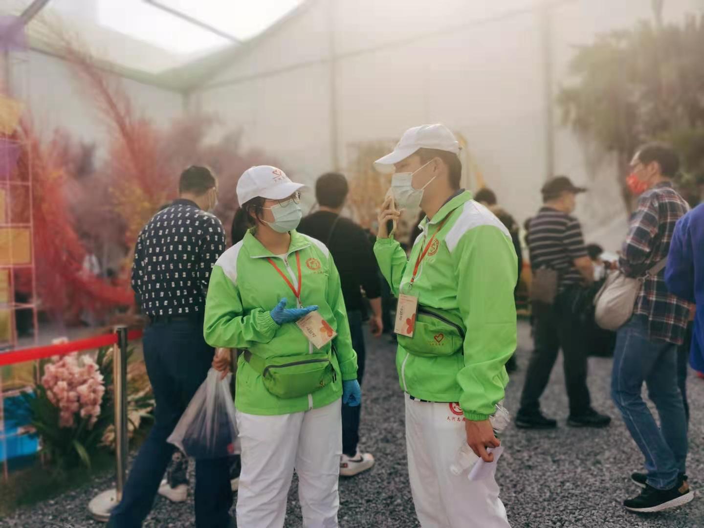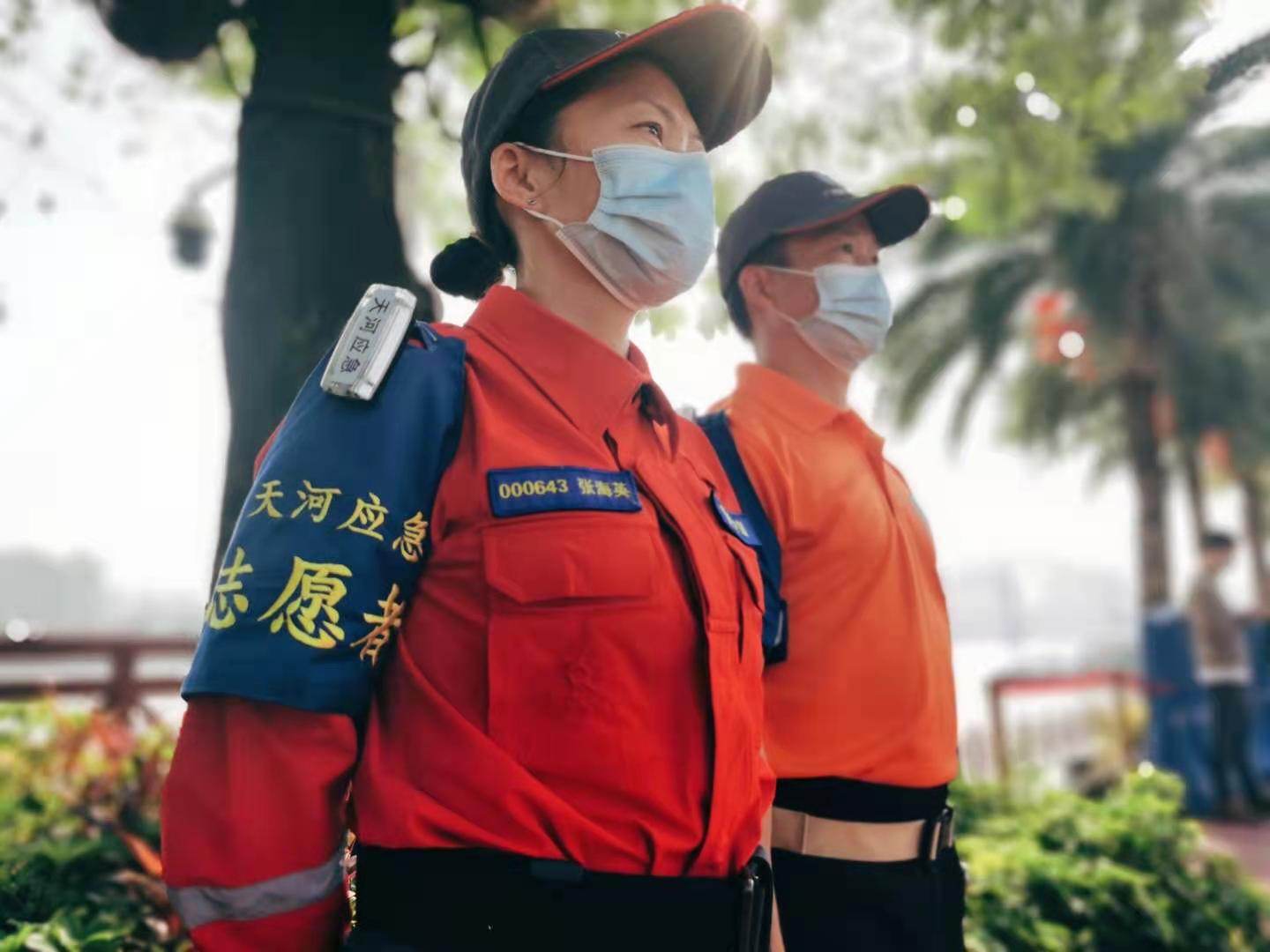 天河應急志願者在博覽會現場開展應急保障服務