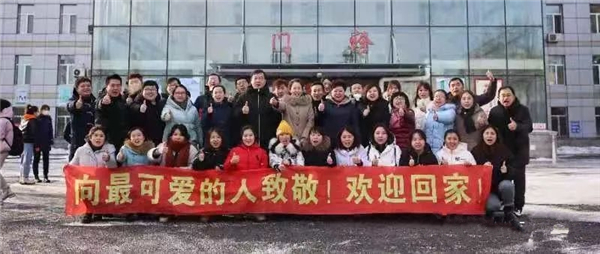 天地風霜盡,乾坤氣象和。日前,哈爾濱市第一醫院整建制接管哈市六院四病區的30名醫生、護士、影像、檢驗、藥劑等醫務人員,經過20多天的奮戰,圓滿地完成任務奏凱而歸。哈爾濱市第一醫院李虹院長、黨委錢朝霞書記、杜繼偉副院長等領導和同事到哈市六院迎接勇士回家。寒梅傲雪迎新春,白衣執甲奏凱歸!