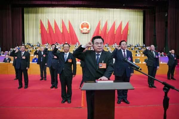 會議舉行憲法宣誓儀式。新當選的15名同志向憲法宣誓。胡昌升領誓。