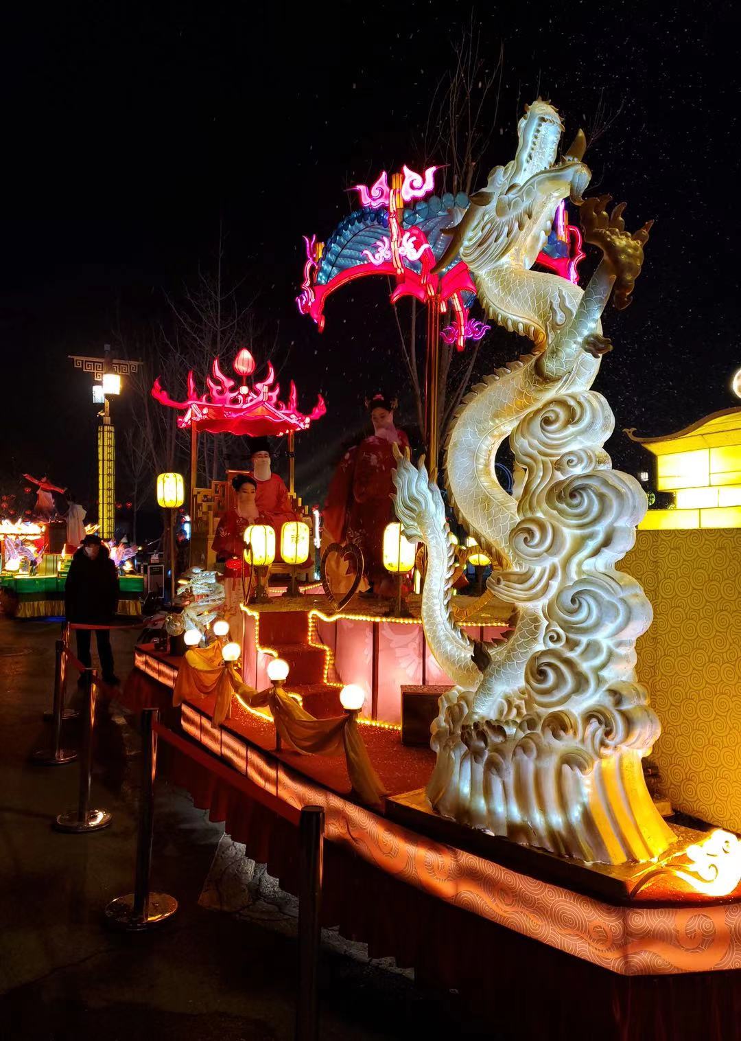 人如潮,燈如晝,正月十四夜晚的古都開封光彩奪目,晶瑩剔透。花車巡遊、歌舞演出、燈展燈謎等持續開展,將2021年宋都皇城「大宋中國年」活動推向高潮,特別是宋都皇城旅遊度假區,簡直是燃爆了。